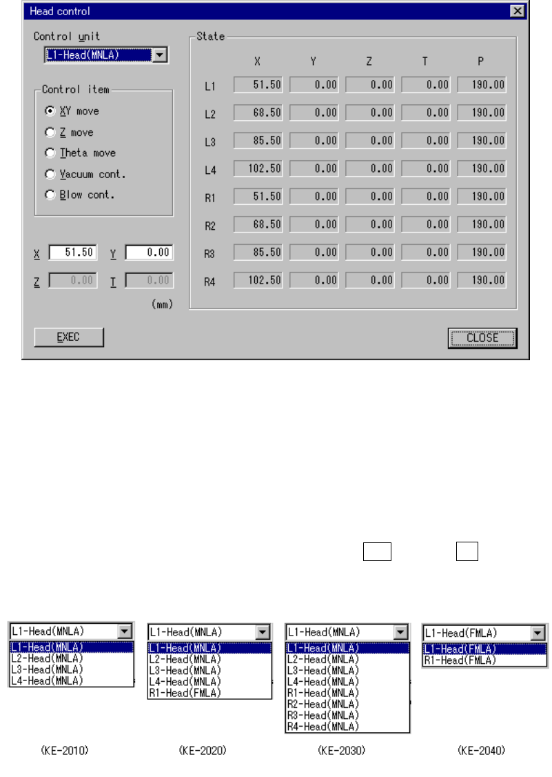 When you select the [Head] command on the [Ctrl] menu, then the [Head control]