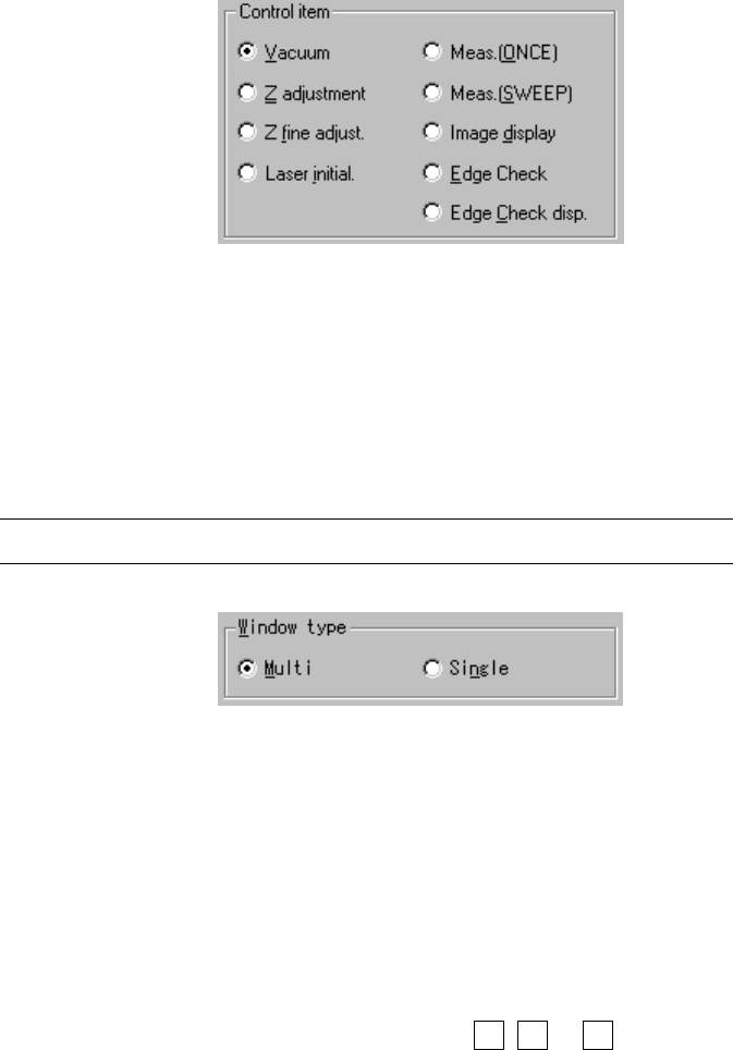 8 − 20 (3) Con trol item Select the contr ol item with a radio but ton. (4) W indow type Select the window type w hich is to be used during measurement with the corresponding radio button. If you do not select “Meas. (ON…