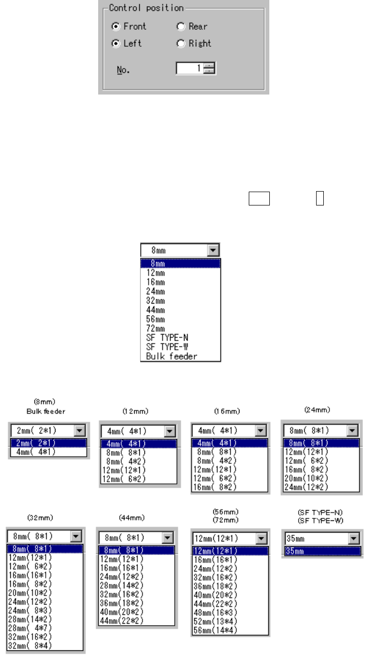 When selecting “Tape feeding action” as the control item, select the tape width