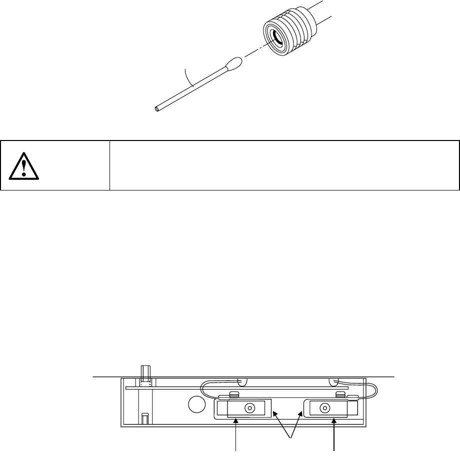 13 − 21 13.3.7 Z slider shaft Clean the inside of the Z slider shaf t with a cotton swab moistened with alcohol f rom the botton. Cotton swab WA RNING To prevent t he body from injury which can be caused by accidental ac…