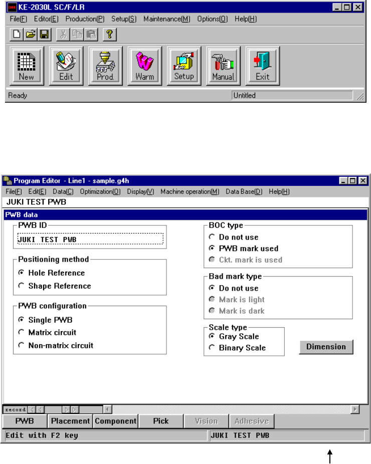 When the Program Editing utility starts up, “UNTITLED” appears on the right side of the