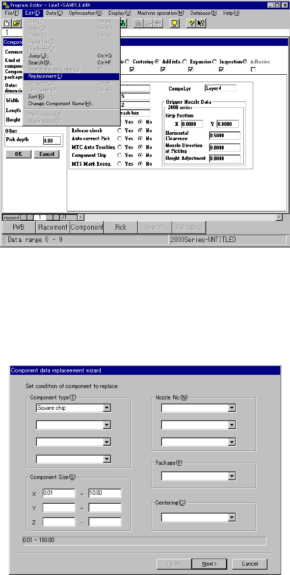 Select the [Replacement] command on the “Edit” menu when the “Component data