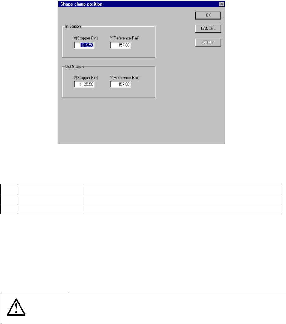 A screen appears as shown in Figure 7.2.2.4.1 “Shape clamp position setting dialog