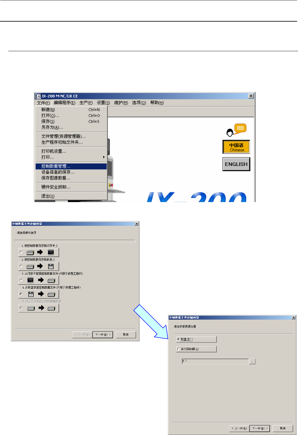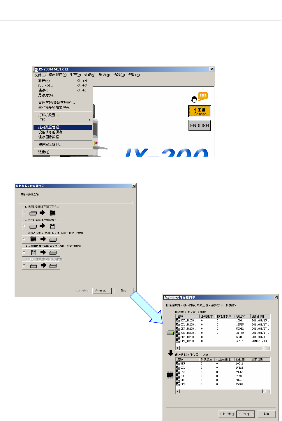 ② 控制数据文件存储想到被显示出来。这时、请选择「1.把控制数据保存到闪存卡上」、然后选择下