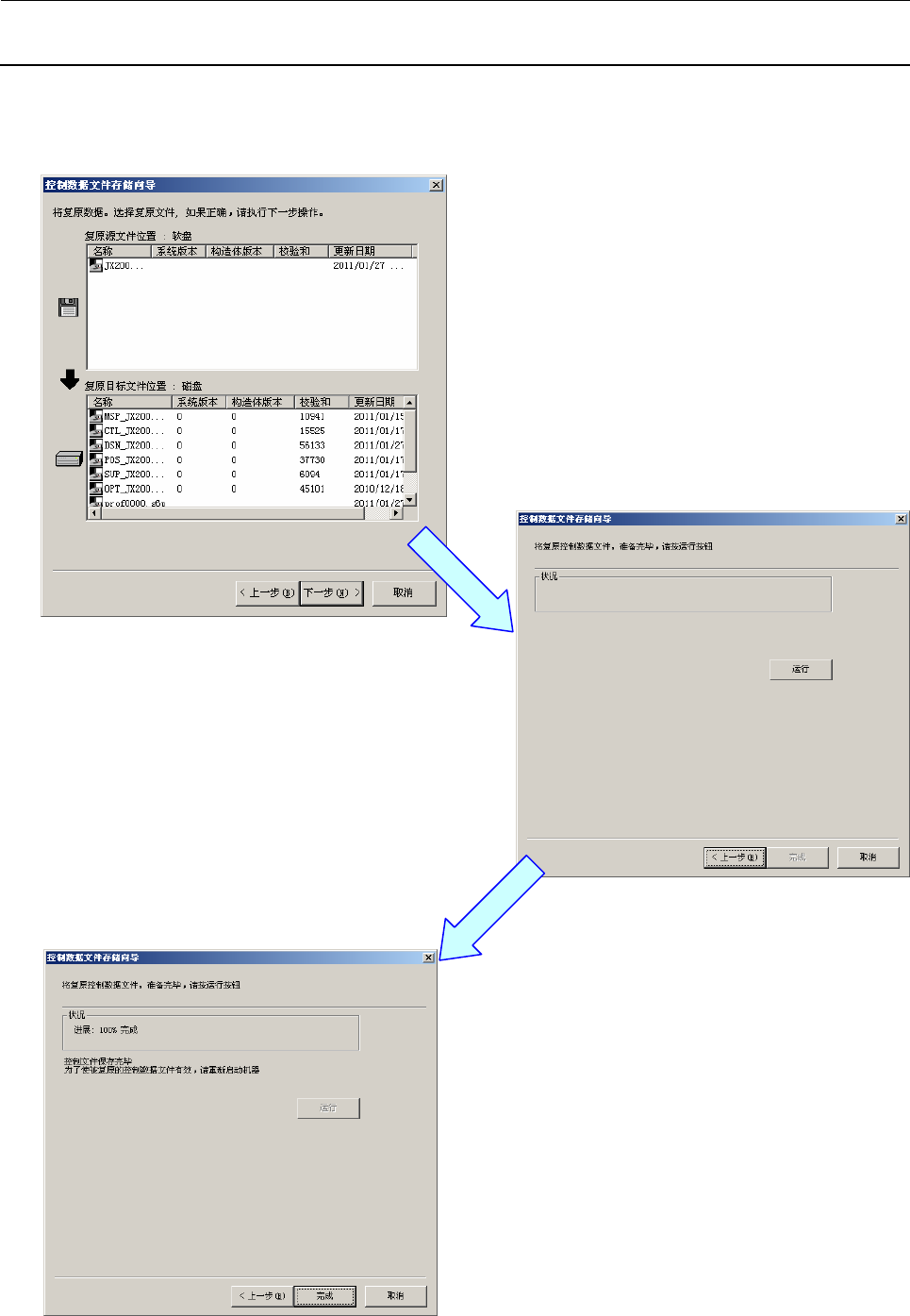 Rev. 1.0 MS 参数 1-8 ④ 从复原源选择文件,确认复原目标,然后选择下一步 (N)。 ⑤ 请选择运行 。 ⑥ 显示执行状况, 当复原操作完成后, 显示以 下画面。请选择完成 。