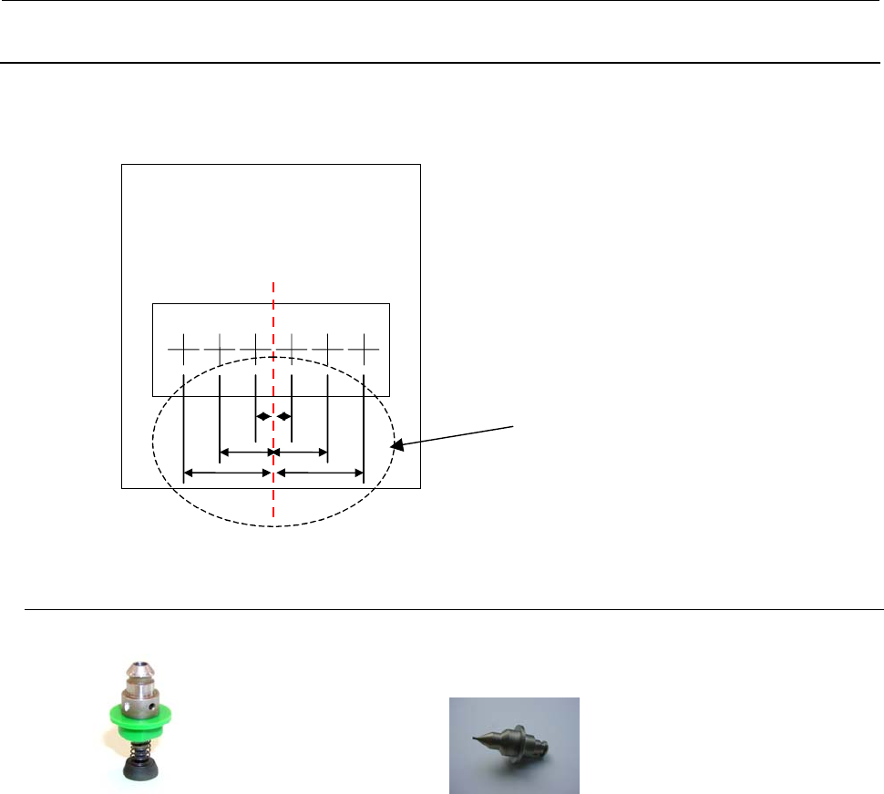 Rev. 1.1 MS 参数 4-3 取得吸嘴旋转中心、各贴装头的轴旋转中心位置离激光传感器的偏离位置。 4-1-2 . 使用治具 · 508 或 508C 吸嘴 ·治具吸嘴 LNC 贴装头用( 40046647 ) 吸嘴旋转中心( L1 ~ L6 ) LNC60 贴装头