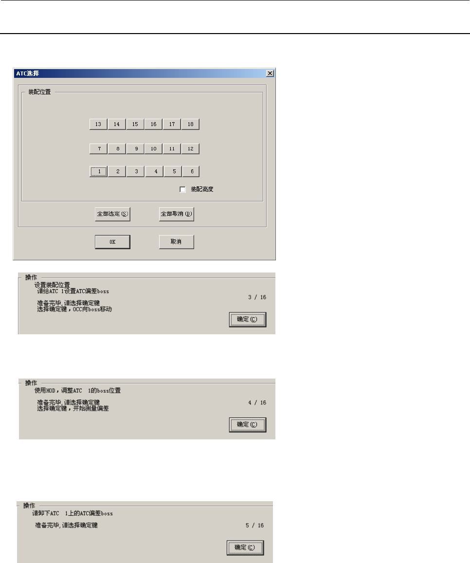 Rev. 1.1 MS 参数 4-35 < 操作 ・1/16( 续 )> 选择设定的参数 。 想要取得选择参数的装配高度时, 请勾选装配高度。 选择确认之后,进行选择参数的设定 。 选择了取消之后,中止参数选择 。 < 操作 ・3/16( 组装位置 )> 把 ATC 偏差设置到设定的 ATC NO。 准备完毕,请选择确认 。 选择了确认之后,移动到 OCC 设定的 ATC NO 的 ATC 部上。 < 操作 ・4/16( 组装位置 )>…