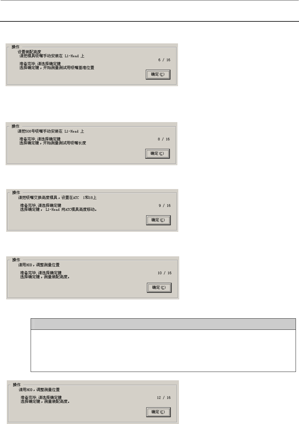 准备完毕后请选择确认。选择确认后,指定贴装头将移动到高度治具位置。