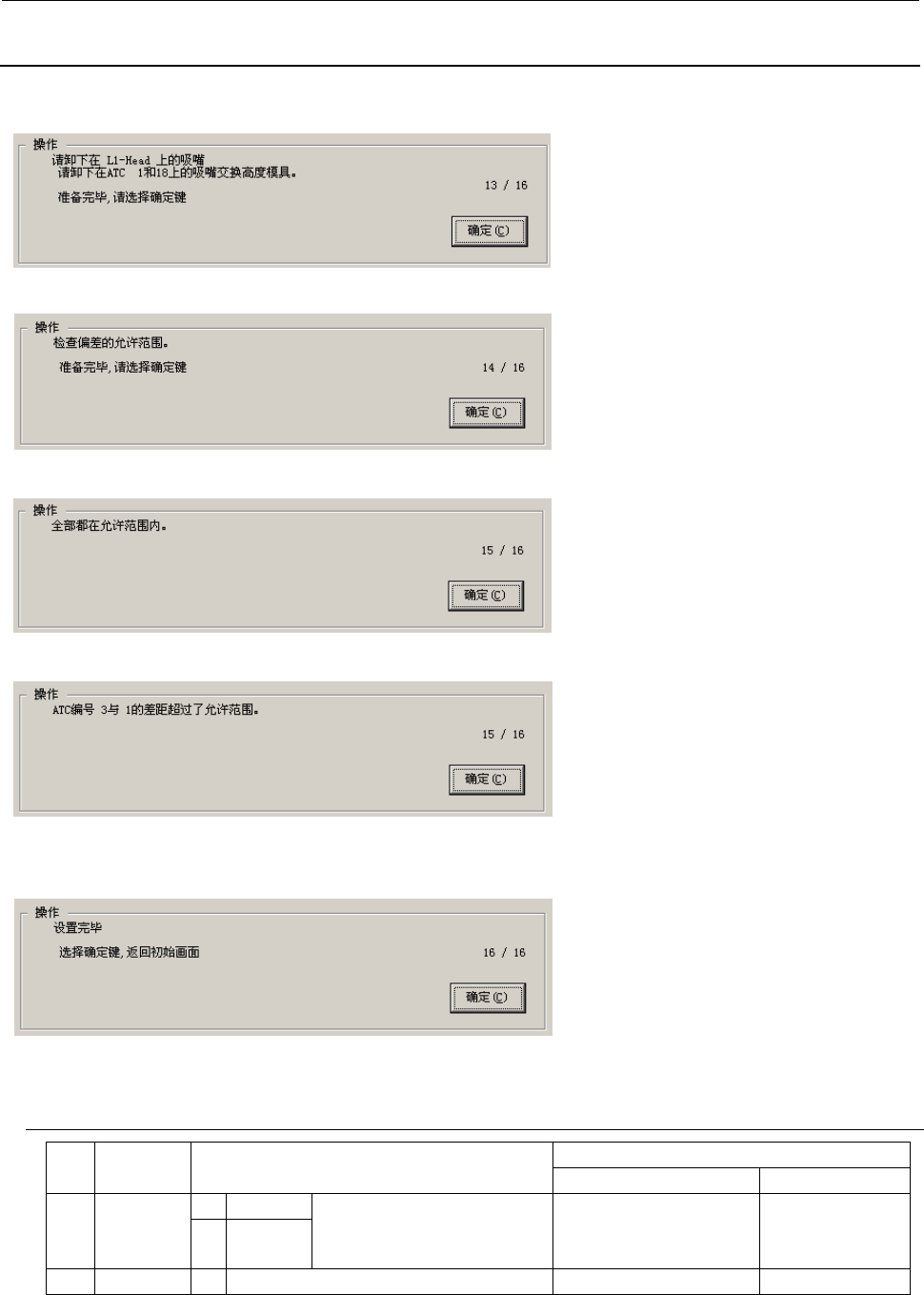 Rev. 1.1 MS 参数 4-36 < 操作 ・6/16( 装配高度 )> XY 的装配位置全部成功取得后,继而进 行装配高度的取得。 请用手动方式将治具吸嘴安 装到所指定 的贴装头上,准备完毕后选择确认。 (未安装治具吸嘴就按下 “ 确认 ” 按钮时, 请按照指示安装吸嘴。 ) 选择确认后, 将进行基准吸嘴的长度测量。 < 操作 ・8/16( 装配高度 )> 请按照指示从指定贴装头上 卸下治具吸 嘴,用手动方式安装 508 吸嘴。…