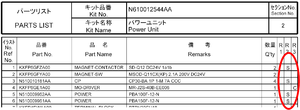 特に、パーツリストの R2 欄に‘S’の記号が記載されている部品は、製品安全に関与する