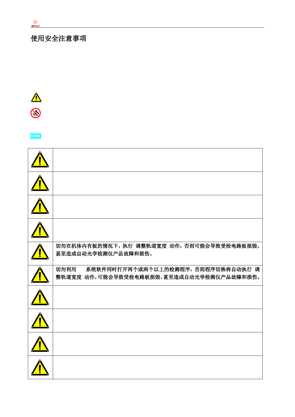 警告标志:警告使用者注意危险的标志。忽略该标志提示或者违反操作规程可能导致人员伤亡。
