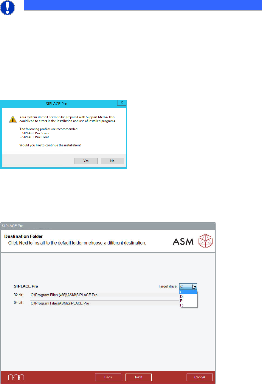 ► Select the drive on which you want to install the 32 bit and 64 bit parts of SIPLACE Pro.