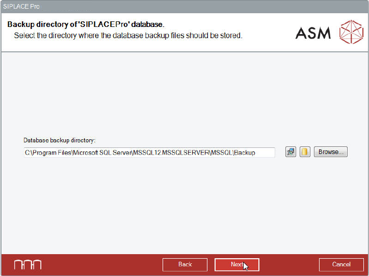 The following dialog is displayed in which you can select the backup directory for the SIPLACE Pro