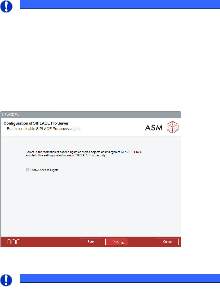In the next dialog, the SIPLACE Pro access rights (SIPLACE Pro Security) can be enabled.