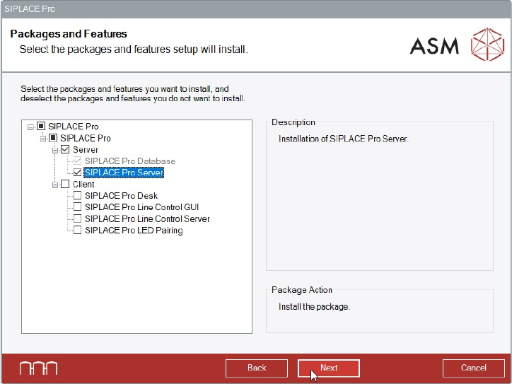 – The installation has to be performed from the computer on which SIPLACE Pro Server is