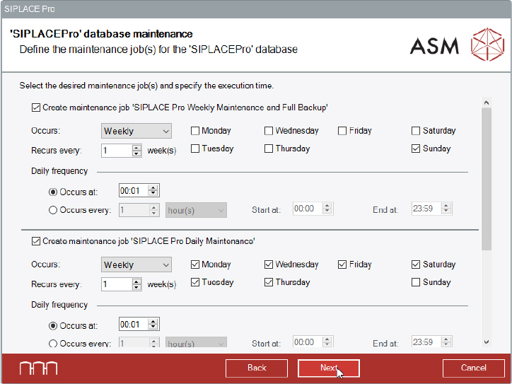 In the next dialog you can change the execution time for defined maintenance job(s) for the