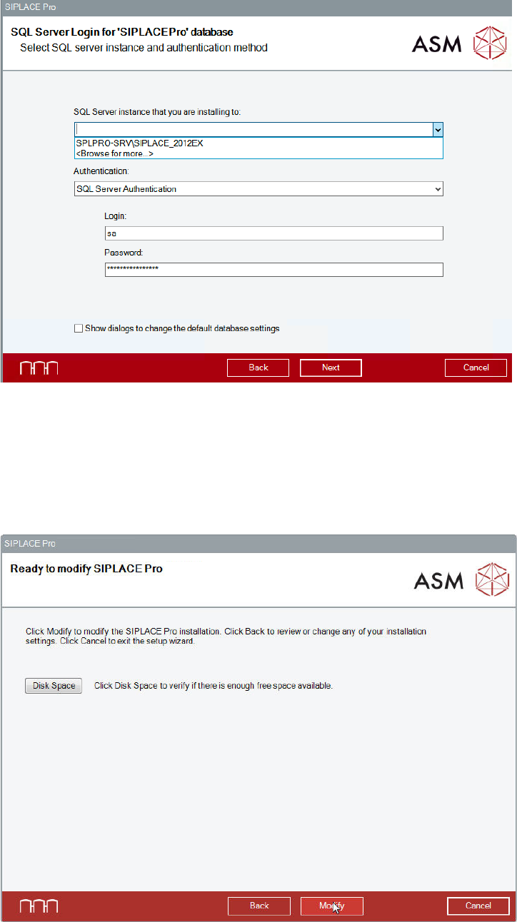 SIPLACE Pro 15.1 (R18 - 1) / Installat ion Manual 05/2018 Edition 56 ► Click the Disk Space button. Please refer to Figur e 6- 11 ff for more inf ormation. ► Click the Modif y button to start modifying the inst allation.…