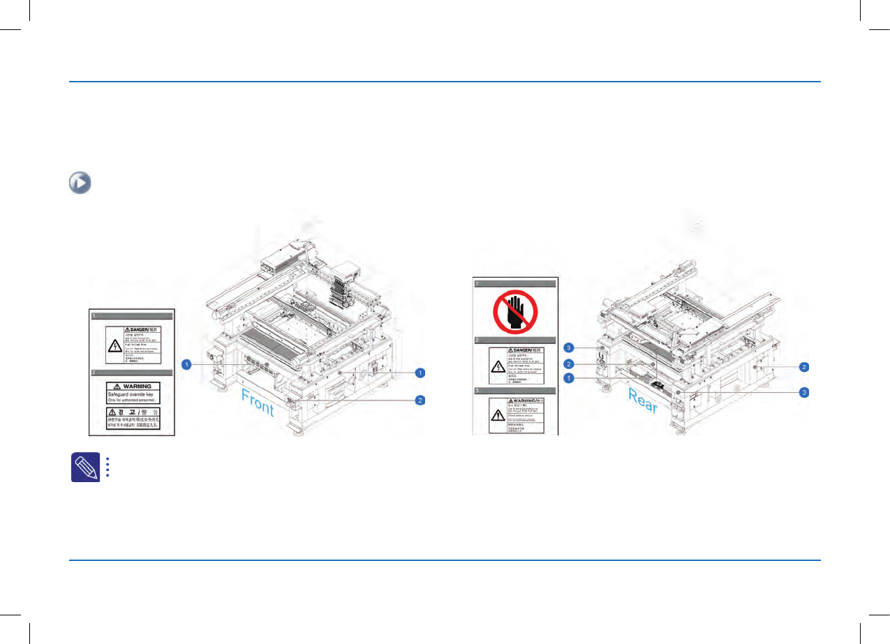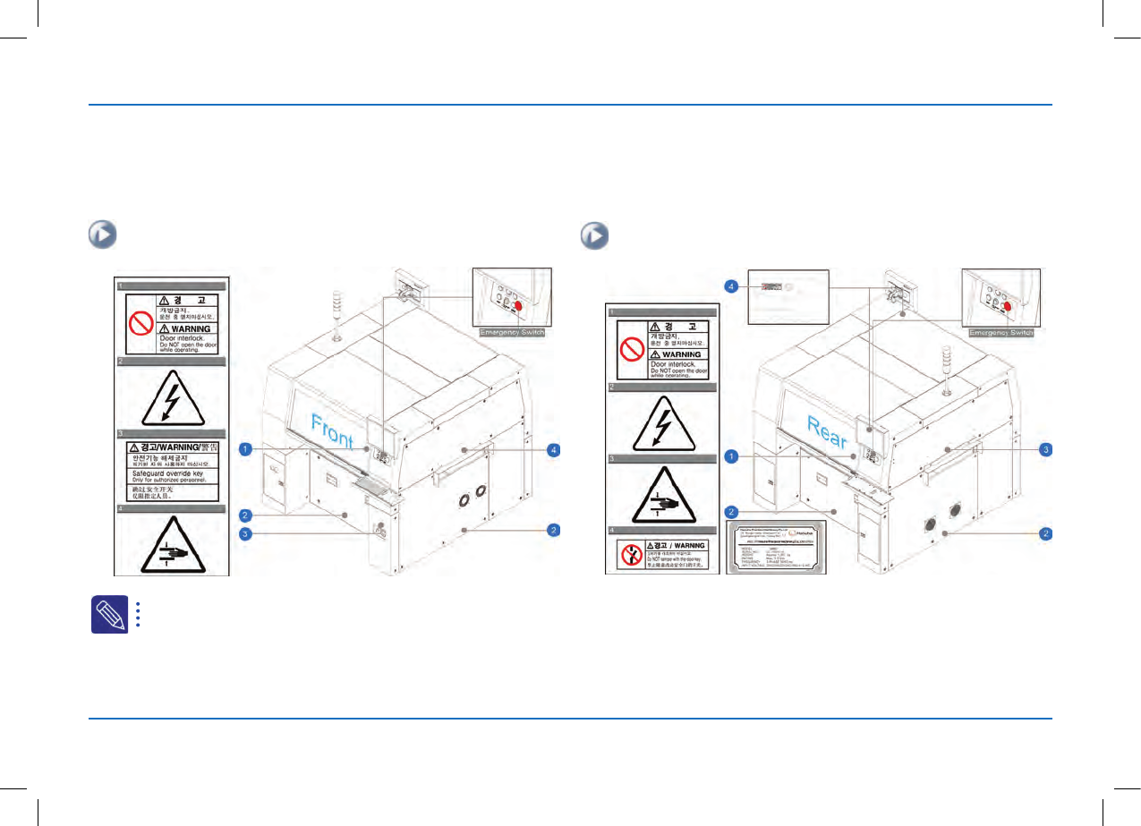 为了安全地使用设备在下列位置粘贴了安全提示标签。