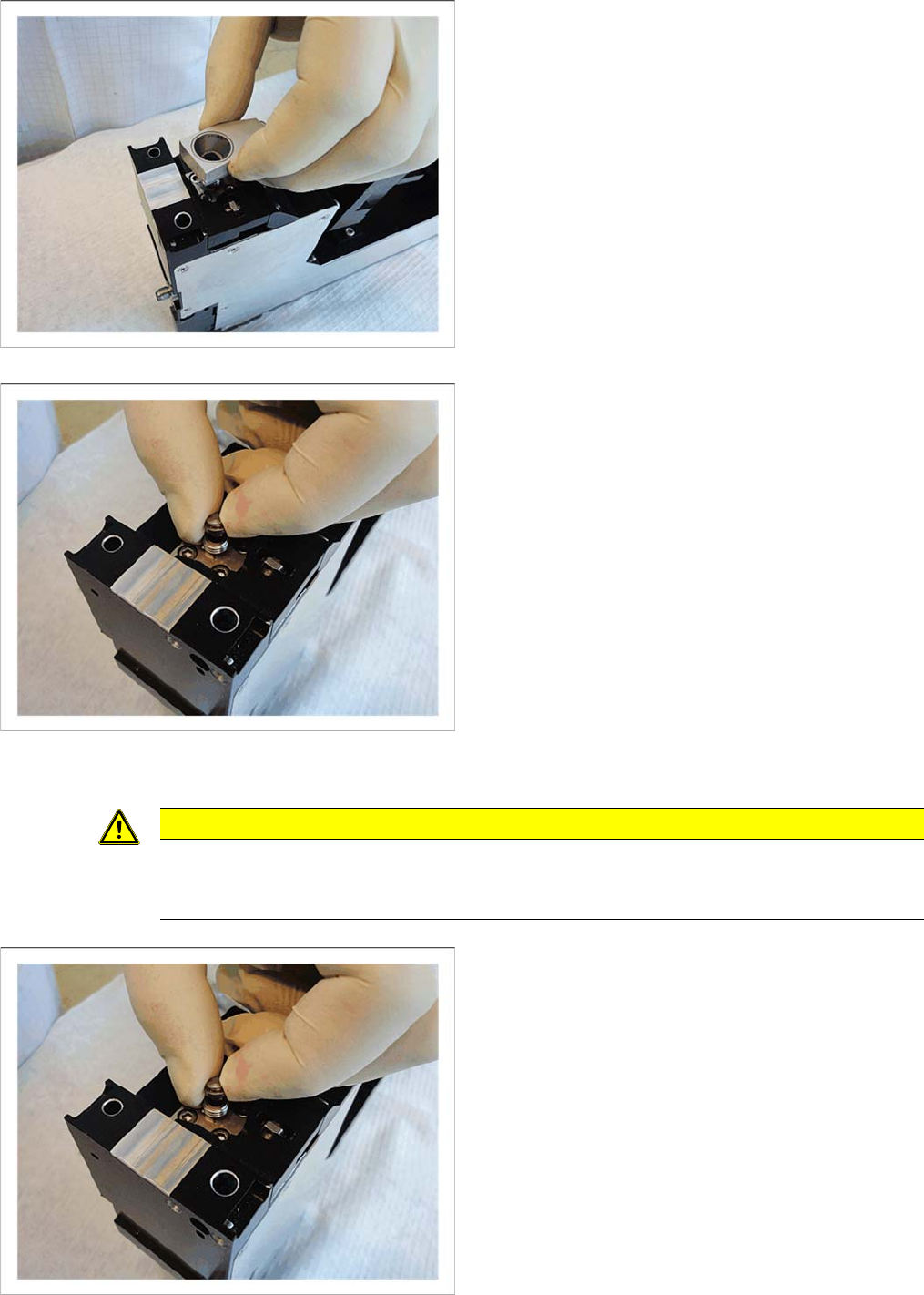 Ersatzteiletausch Spritzdüse 3.12.2 Spritzdüse montieren 36 Serviceanleitung SIPLACE Glue Feeder ► Setzen Sie die Düsenheizung auf den Jet-Block und richten Sie diese gerade am Kartuschenrohr aus. ► Legen Sie die Überwur…
