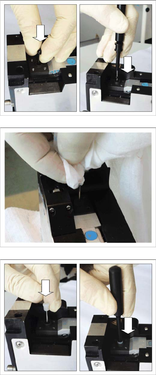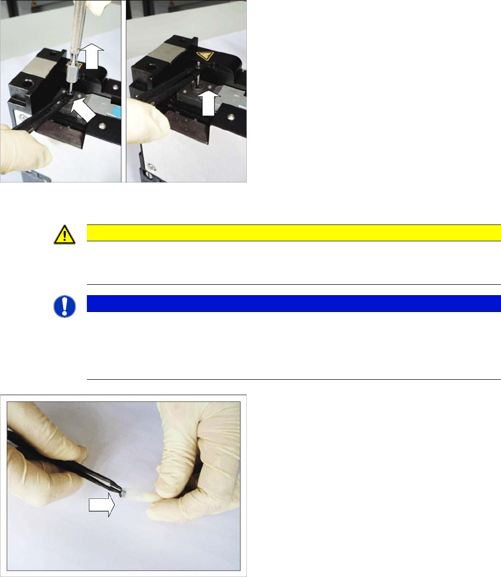 ► Heben Sie die Führungsbuchse mit der Pinzette