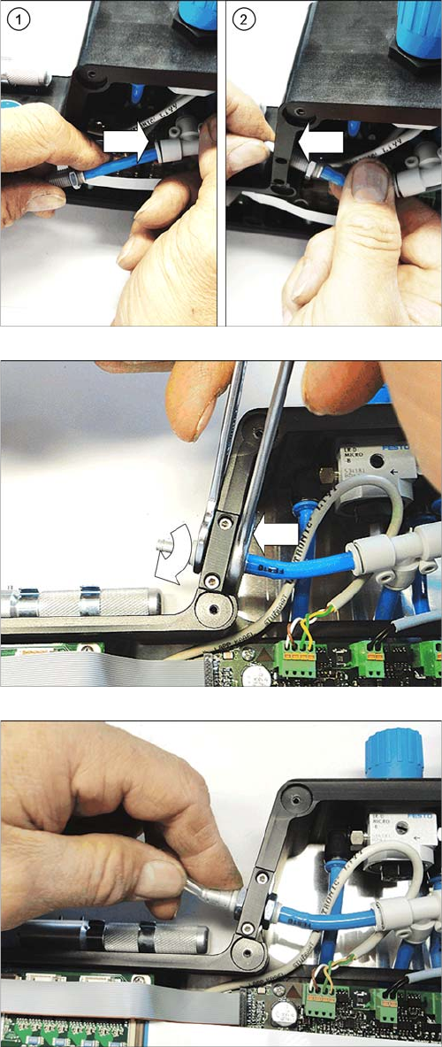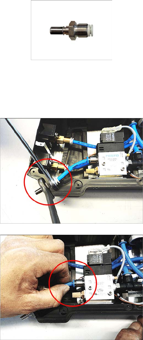 Ersatzteiletausch 3.20.2 Stecknippel-Schottversc hraubung montieren Stecknippe l-Sch ottverschraubung Serviceanleitung SIPLACE Glue Feeder 79 ► Stecken S ie das freie Ende des Schlauchs bis zum Anschlag in den Anschluss …