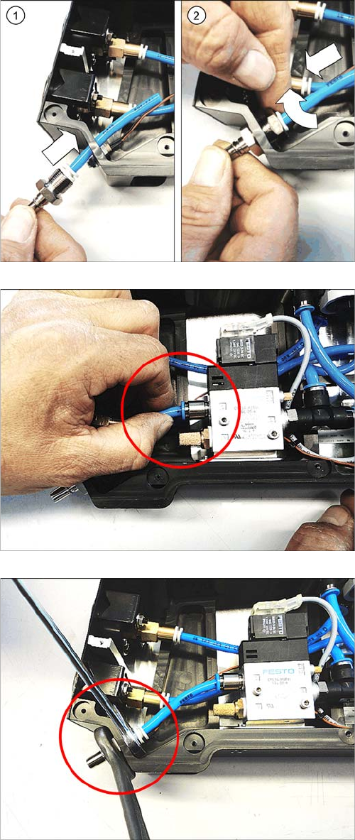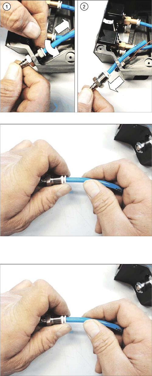 Ersatzteiletausch Kupplungsstecker 3.21.2 Kupplungsstecker montieren 82 Serviceanleitung SIPLACE Glue Feeder ► Stecken Sie den Schlauch und den Ku pplungsste - cker in den Rahmen des Glue Fee ders. (1) ► Schieben Sie die…