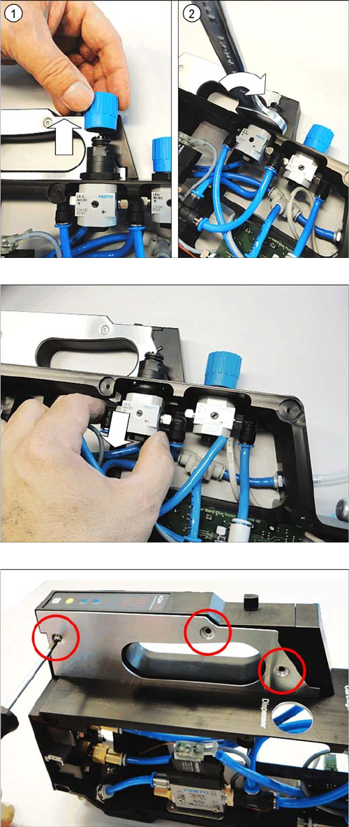 ► Ziehen Sie den Deckel vom Druckregelventil senk-