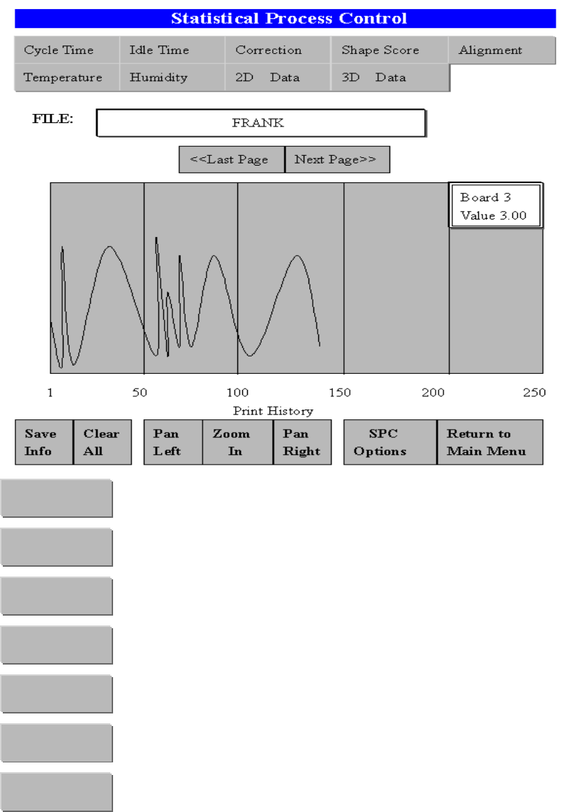 5.SPC Data 生產 統 計 過程 資料 顯示機器在印刷 時 所 花 的 時間 , 如有擦拭 , 時間 必 加長 機器在印刷 時 所等 待送 板 與 出板 時間 顯示 PCB 板進入印刷位置 與 鋼板對 位 時 X 、 Y 、 THET A 軸 修正值 視覺系統 辨別 PCB 板 與 鋼板 Mark 點 亮 度 接受值 顯示 圖 表 視覺系統 辨別 PCB 板 與 鋼板 Mark 點 X 、 Y 修正補償 顯示 圖 表 2D 錫面…