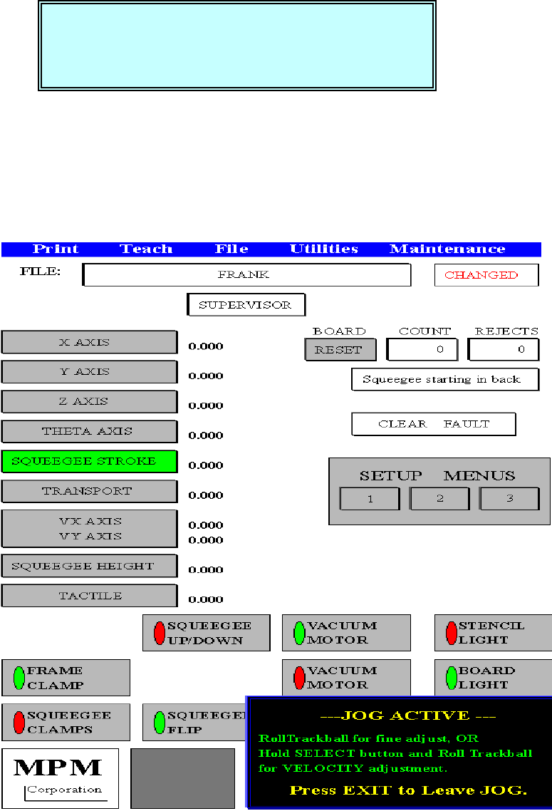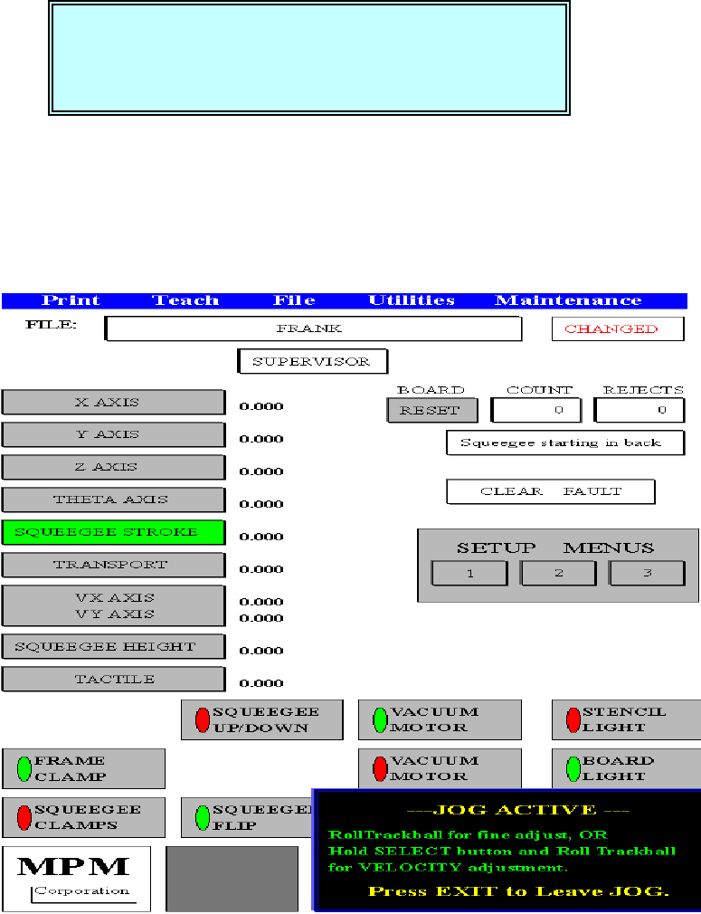 JOG ACTIVE…(移動現在刮刀行程位置)
