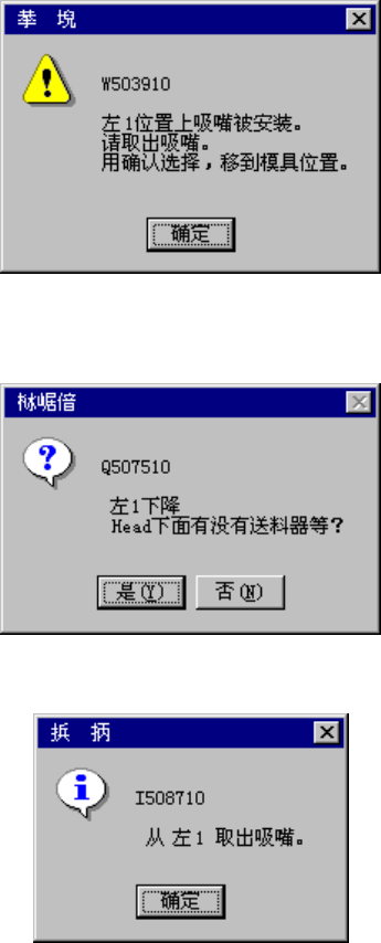 选择“确定”后,当其他贴片头有吸嘴安装错误时,请做同样的处理。