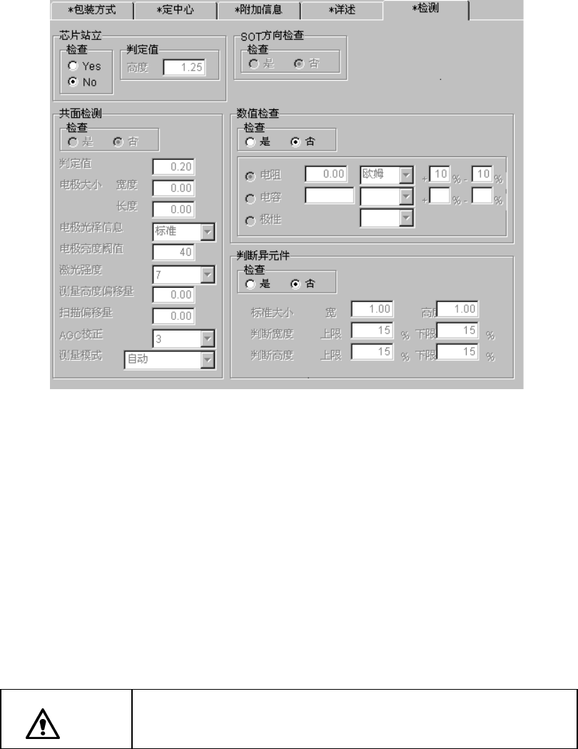 ※判定值: 自动输入根据已输入的元件高度尺寸计算出的值。激光定心时,当测定值超过此