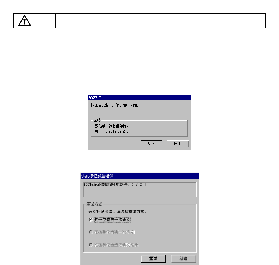 在进行时,若送料器台标记识别失败,显示如下的对话框。此时,识别结果不会储存。选择