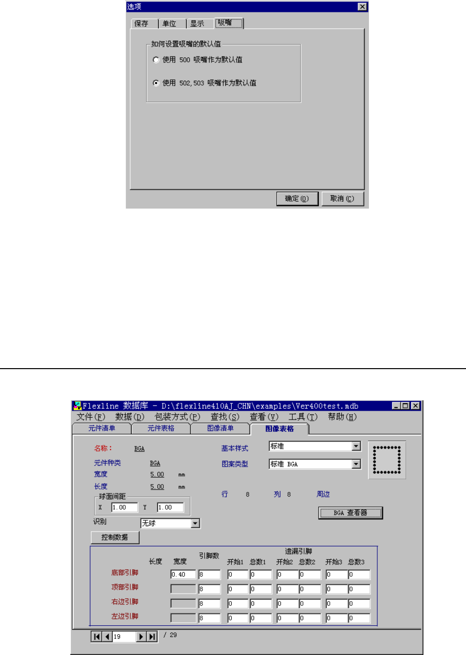 在“500号吸嘴”与“502·503号吸嘴”中指定要使用的吸嘴。根据在此的指定,在数据制作