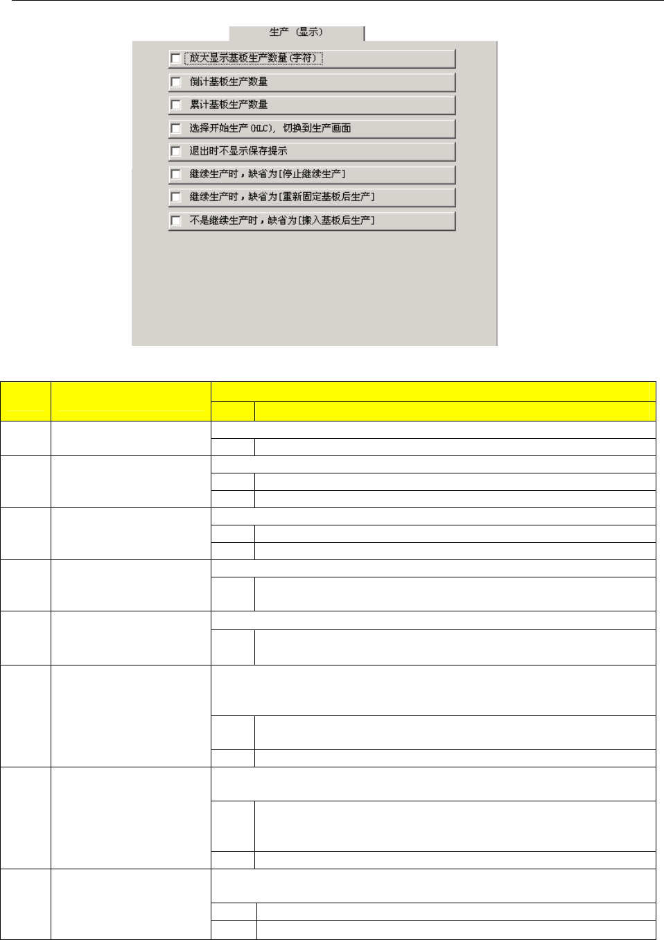 图5- 4生产时的显示选项