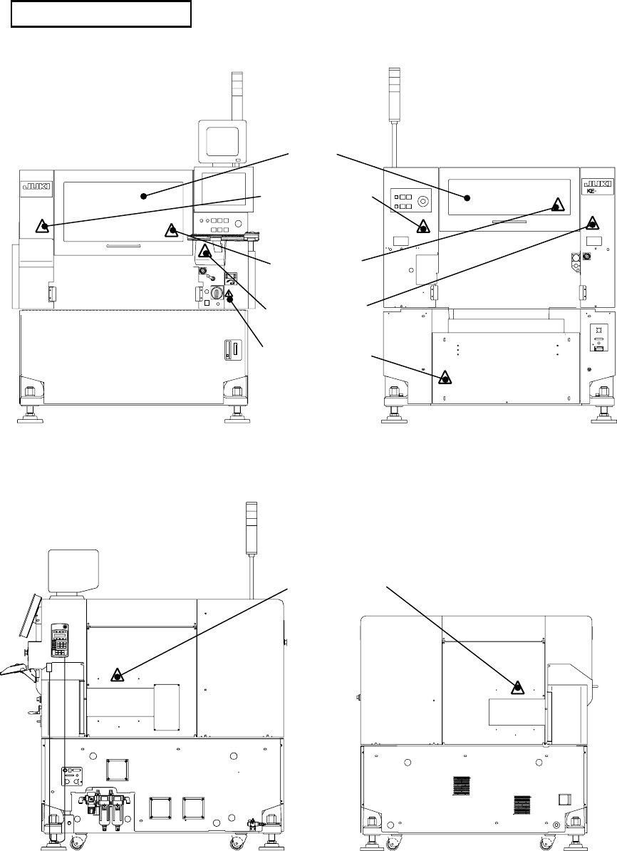 V 警告标识的贴花位置 KE-2060 【正视图】 【后视图】 【右侧面图】 【左侧面图】 小心活动部的标识 小心活动部的标识 小心被卷入的标识 小心高 压 的 标识 小心活动部的标识 安全盖