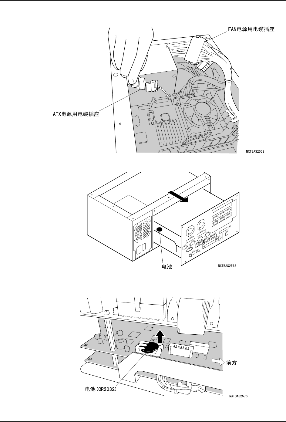 4. 请拆除 ATX 电源用、FAN 电源用电缆的接插头。