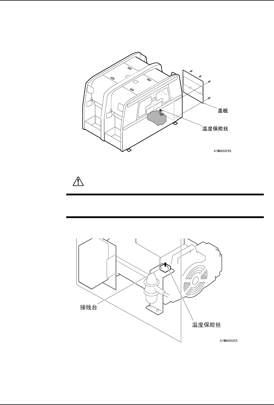 7. 消耗品的更换 QD053-04 172 AIM 机械手册 7.11 真空泵温度保险丝的更换 7.11.1 更换方法 1. 拆 下 2 模组 Side2 的盖板。 2. 将主电源开关 OFF,切断机 器的电源。 3. 从真空泵的接线台上拉出温度保险丝进 行更换。 注意 ·在更换保险丝前,请 务必切断电源。 ·请用与拆下的保险丝 相同容量的保险丝更换。