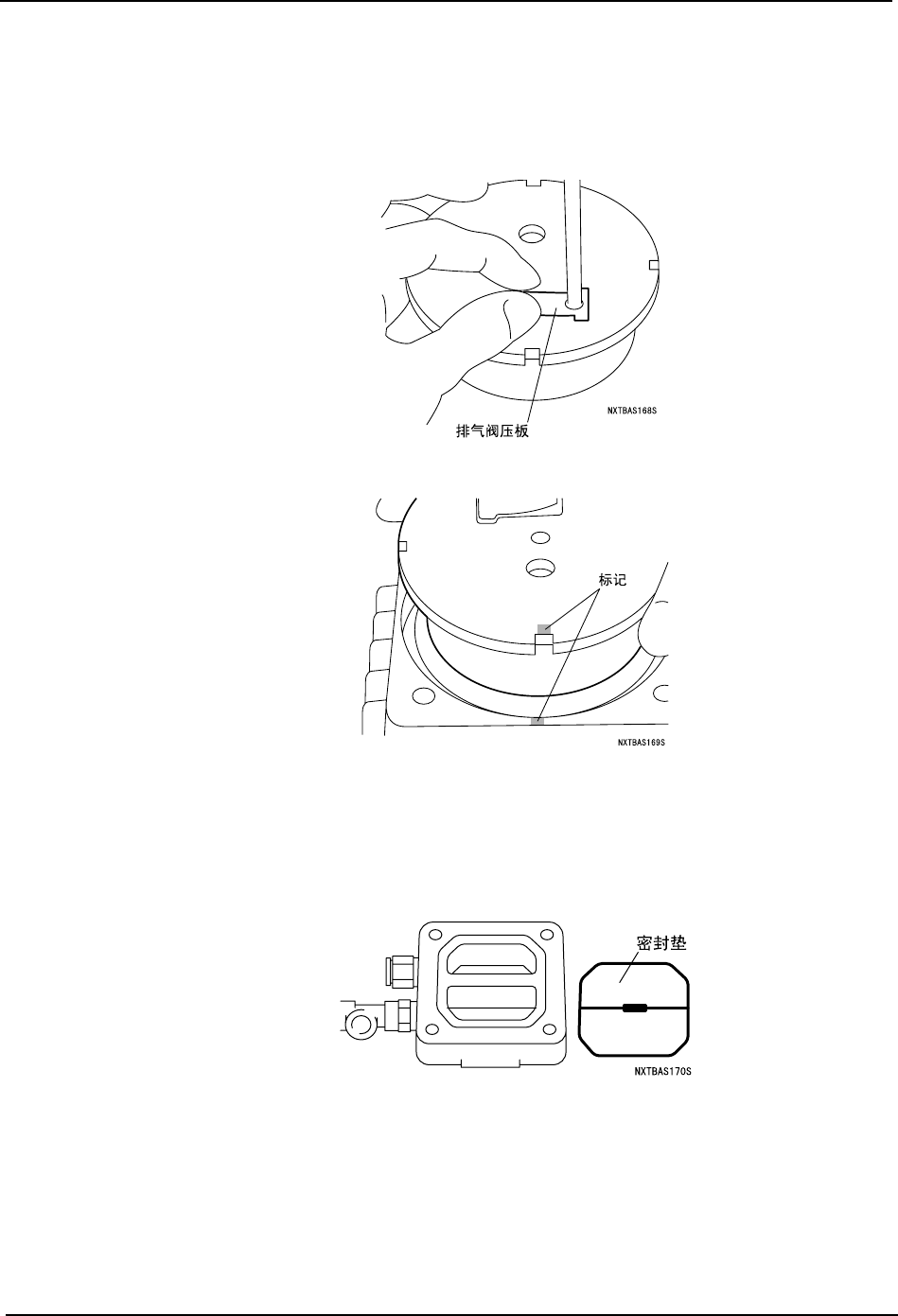 b. 一边确认排气阀不要碰到气缸的凹槽内侧周围,一边将排气阀压板用小螺丝 (M3 ×