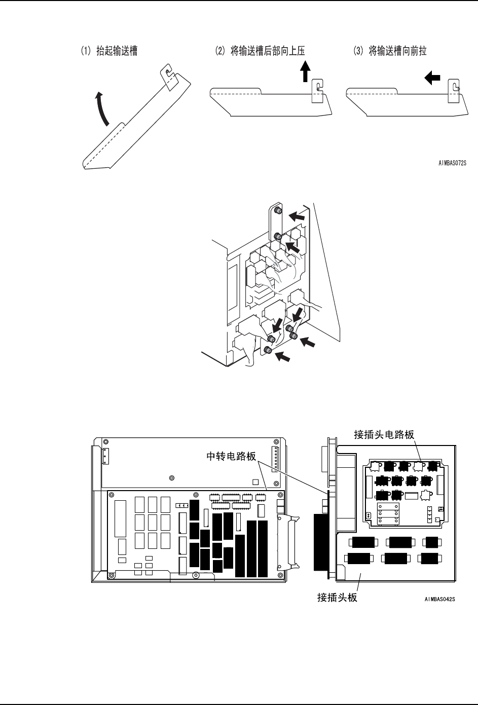 8. 部件的更换 QD053-04 206 AIM 机械手册 4. 拆除机器内部的废料带输送槽。 5. 拆除固定控制箱的螺栓。 6. 拆除以■显示的部分的接插头。 7. 从机器本体取出控制箱。 8. 以拆除新的伺服箱的相反的步骤安装到 模组主体上。 AIMBAS021 CN MCBCN 5 6 11 7 2 16 17 1 10 7 11 20 9 3