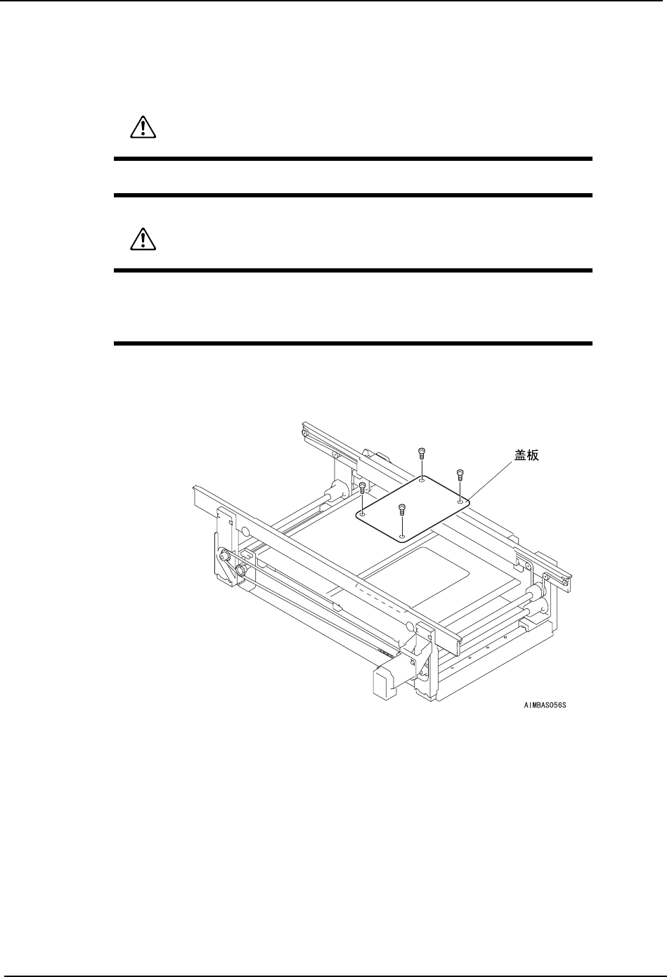 8. 部件的更换 QD053-04 218 AIM 机械手册 3. 拆下螺丝 (2 根 )。取下 搬运轨道控制箱的盖罩。 4. 从搬运轨道控制箱,拆除■所显示部分 的插头。 5. 拆下螺栓 (2 根 ),拆除 搬运轨道控制箱。 6. 以与拆除相反的步骤安装新的控制箱。