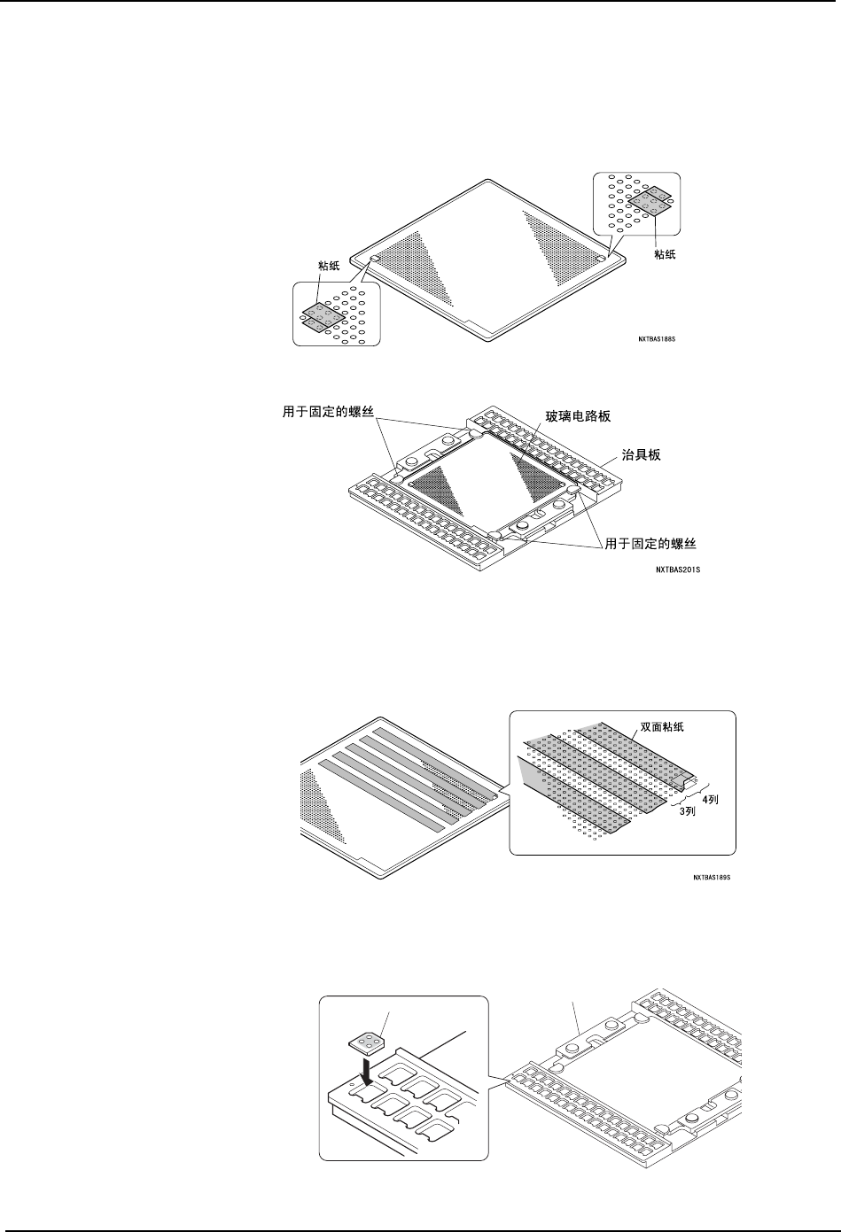 2. 请将玻璃电路板的定位点印刷面向上安装在治具板上用 4 个螺丝固定。