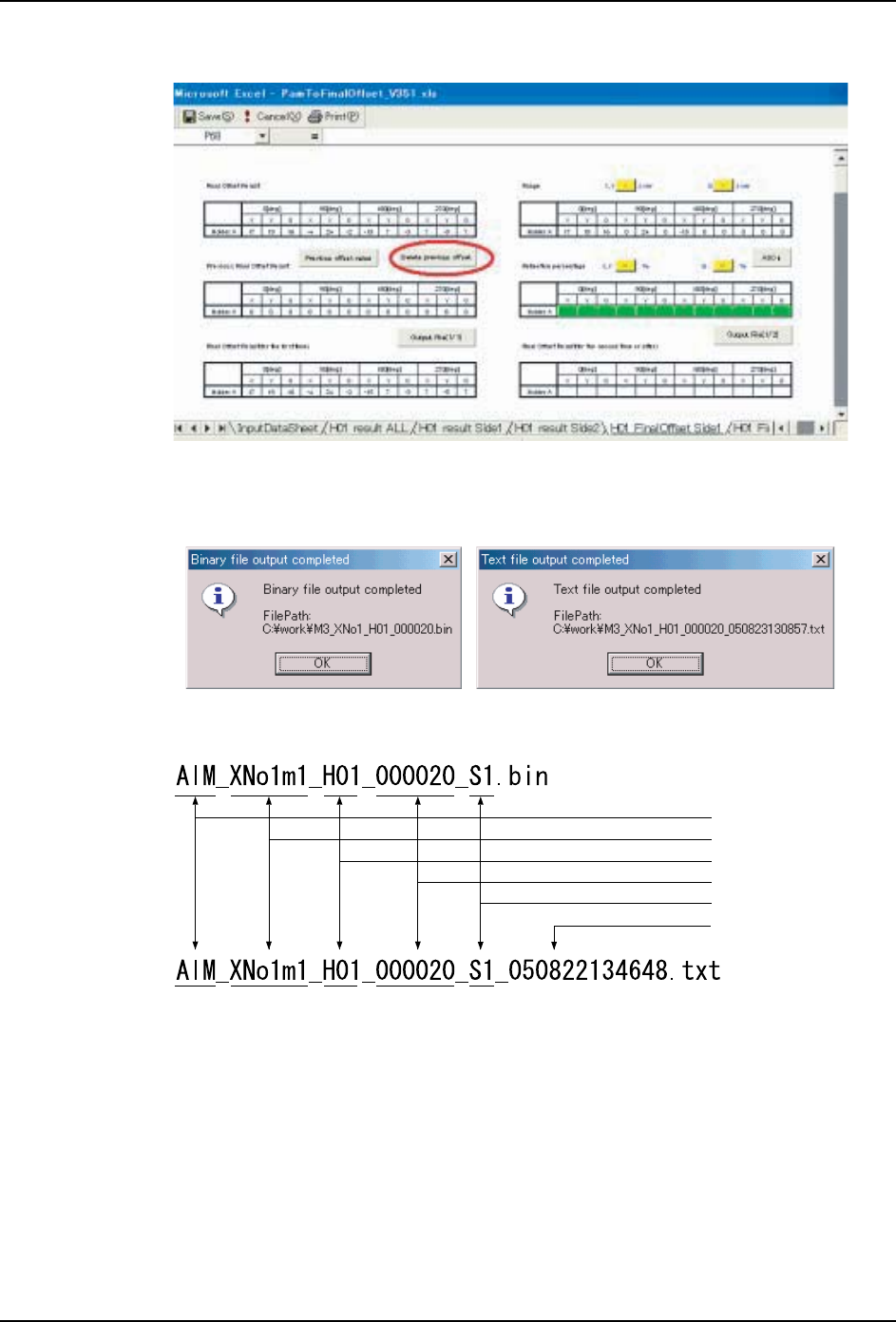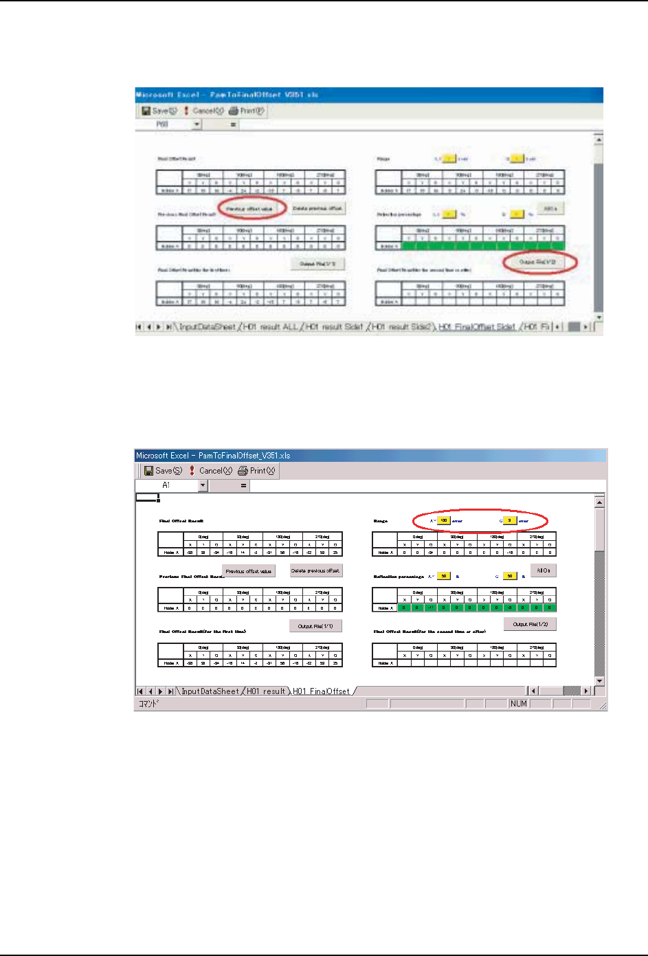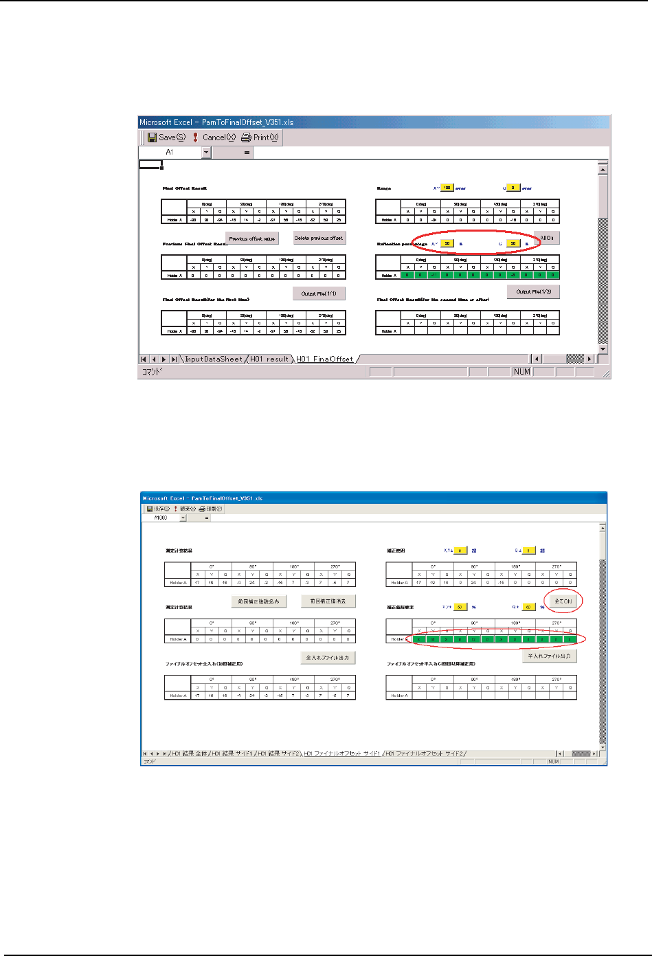 QD053-04 9. 传感器的调整 AIM 机械手册 243 d. 在 2 次以后的PAM 上并且要反映将测定结果的一部 分反映到上次的测定结果中的时候 。 · 请按下各自的 「补正范围」按键 ,输入希望的数值。 · 请执行 「一半输出文件」 。 e. 在 2 次以后的 PAM 上 并且仅仅是特定的地方要变更手动 修正值的时候。 · 请将要变更的地方的反转按钮设定 为 「OFF」 (绿色) 。 · 请执行 「一半输出文件」 。 备注 …