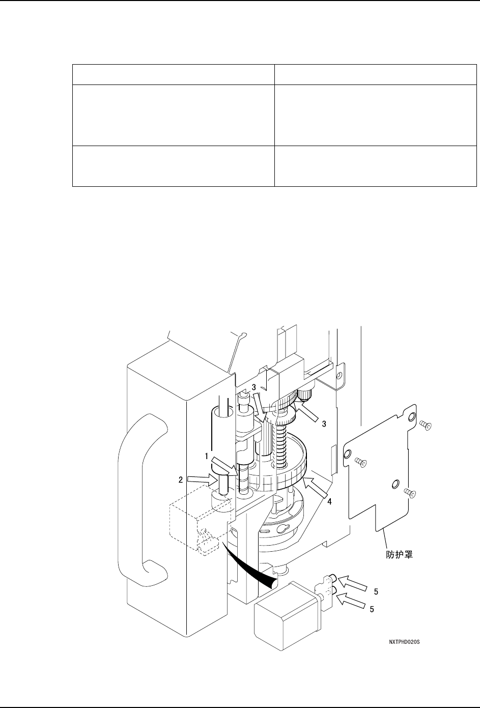 5. 请在步进马达的凸轮推杆 (5) 的内部和外周处薄薄涂一层指定的润滑油。
