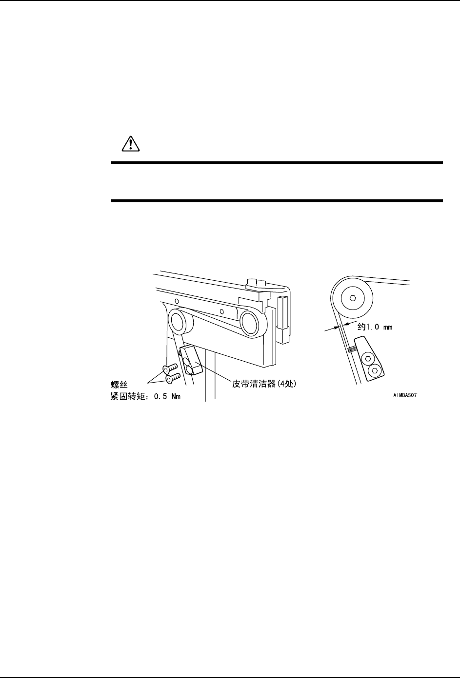 3. 请更换传送带清洁器。安装新的清洁器时,请将毛刷部分押紧在距离搬运轨道传送带约