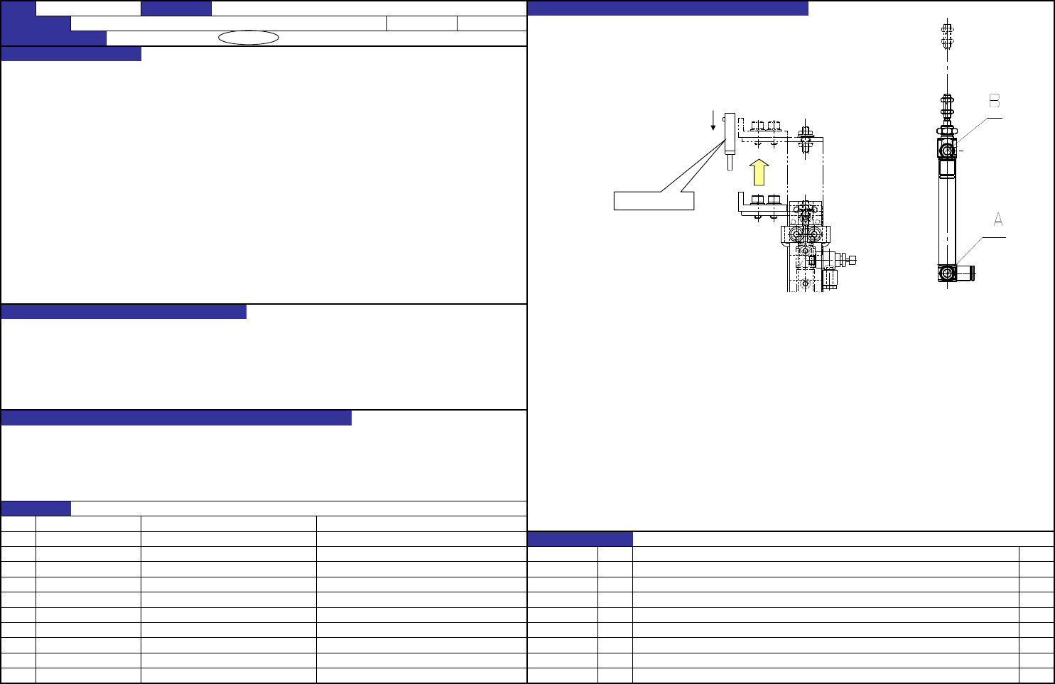 QA表 NO. 1/ 1 机种 1-1.速度控制调整时,线全部拧仅螺丝,返回指定转动。 调整后用螺母固定。 1.速度控制打开度: A侧(安装在气缸)从全闭打开2圈。 1-2. 调整B侧的速度控制器时,先让限动器升上去,在此状态下将治具传感器 B侧 从电磁阀ON信号到夹具探头ON(制动器动作完成)的时间为170ms±10ms。 从上向下移动,在传感器启动的位置上安装,在此状态下进行测定。 2.止动板的动作应顺畅。 2.ON/OFF空气,观…
