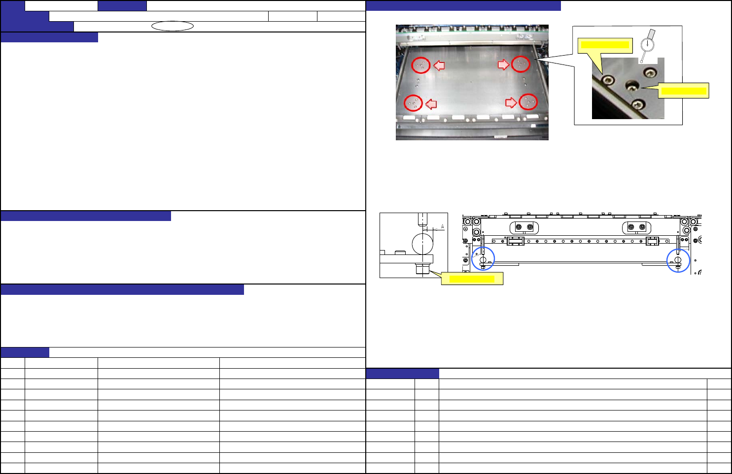 QA表 NO. 1/ 1 机种 1.向音波式皮带张力计输入规定的数值,放到下列的位置进行测定。 调整时,请拧松张力架组件的固定螺丝,移动调整。 1.BU驱动用同步皮带张力 42.5N±2.5N L规格: Weight=002.5 Width=009.0 Span=0170 XL规格: Weight=002.5 Width=012.0 Span=0170 ※本图是从背面看的图。 1.传导BU马达的驱动力,让BU台上下移动。 1.BU台上下…
