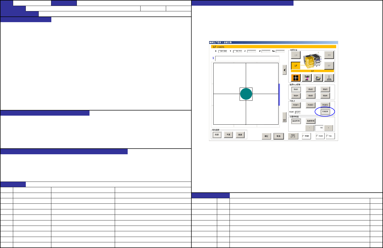 QA表 NO. 1/ 1 机种 ・ 将主送料器安装于3、15、30、45、57的位置。 ・ 测量主送料器的P.P位置,确认处于规格值内。 ※ 测量P.P位置时的示教中,应使用示教点“WINDOW”(参照下图)。 主送料器(治具)的P.P位置:对设计值 (X,Y)±0.05mm。 吸取位置的稳定化 同时吸取率的提高 带式送料器的吸取位置偏移 同时吸取率的降低 NO ① ② NO. 担当人 ③ ④ ⑤ ⑥ ⑦ ⑧ ⑨ ⑩ 【8】-9 内容 …