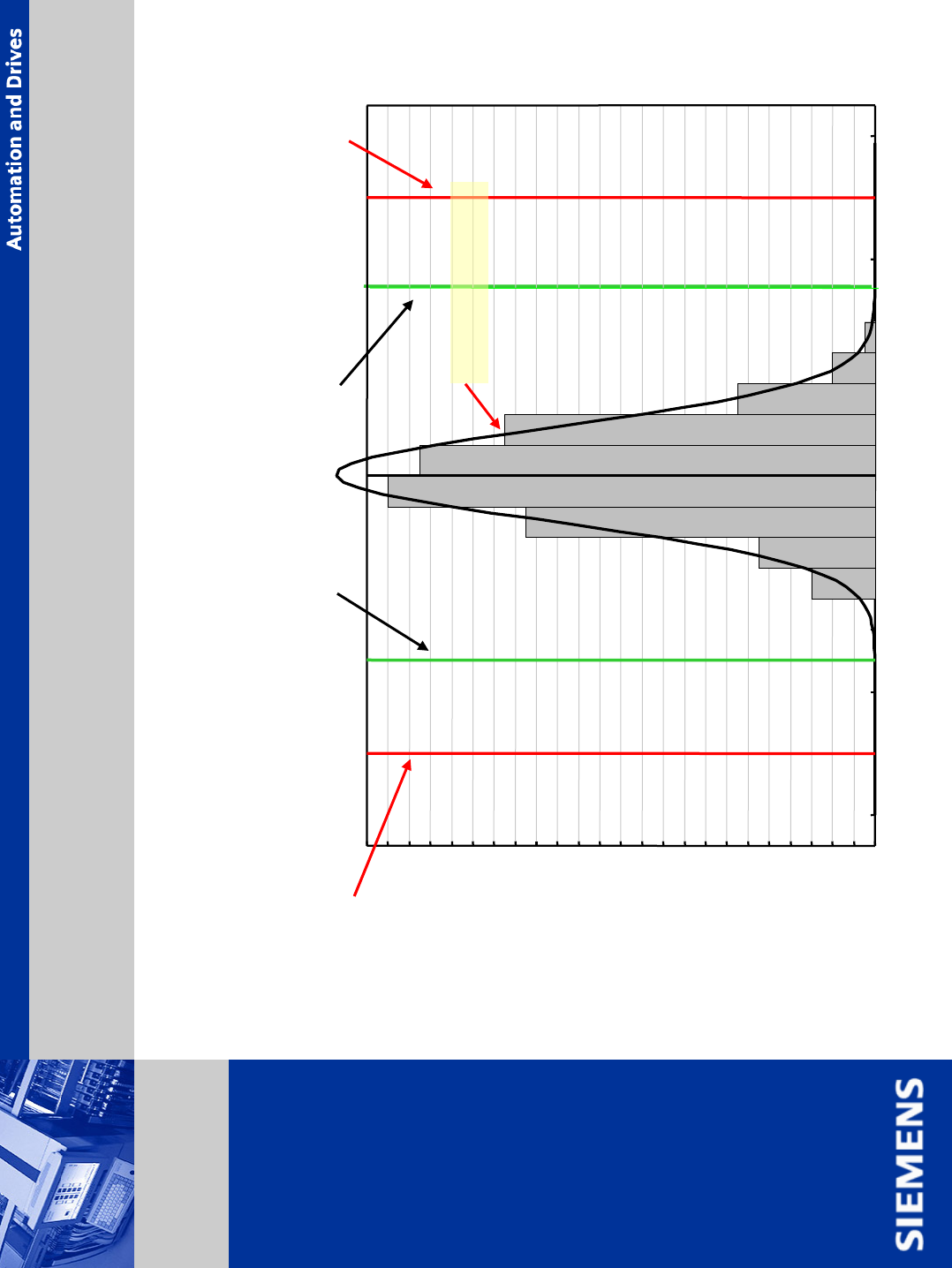 © Siemens AG . . Änderungen vorbehalten SIPLACE Placement Systems set point (specification limit) calculated value (sigma limit) frequency plot: Gaussian Bell curve set point value (specification limit e.g. +- 90 um) -11…