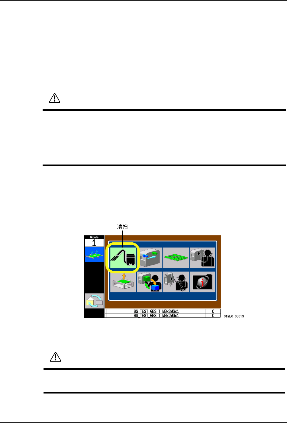 QD029-26 5. 基本操作 NXT 机械手册 81 5. 基本操作 5.1 模组的拉出 / 插入 为了访问模组内的各个机器装置 , 可 以使模组处于半拉出的状态。 可以方便地进行贴装工作 头、吸嘴置放台等的更换操作、 模组的内部清扫·加油等操作。 备注 )在进行双模组生产时的 2 个模组是始终连接在一起的。请在 2 个模组处于连接的状态 下进行操作。 5.1.1 拉出方法 1. 停止模组的运转、使其处于 START 等待状态。 2…