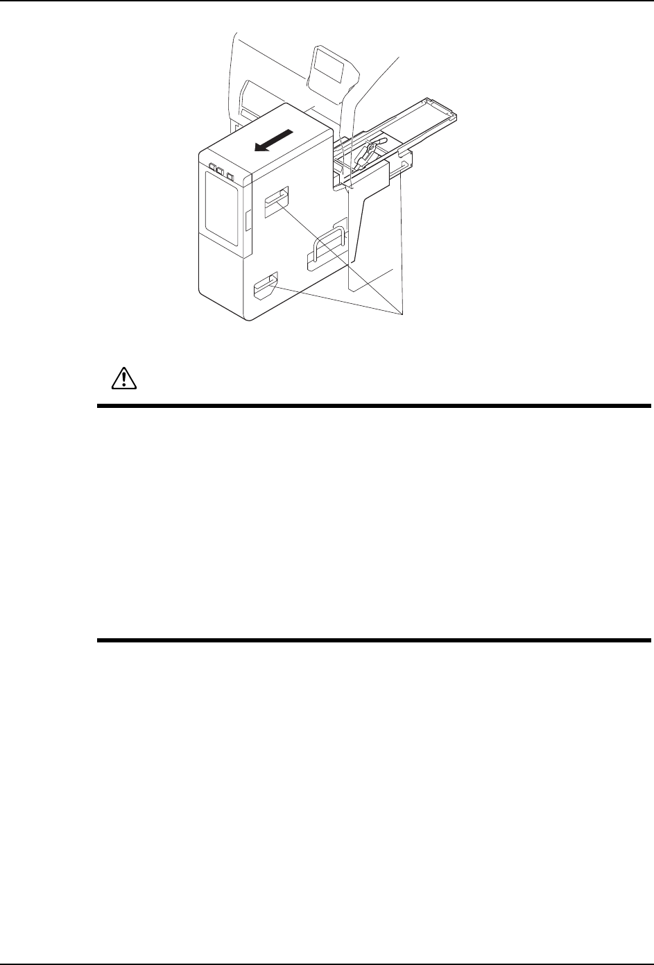 在搬运料盘单元 -M 时请 2 个操作员进行。此时,请紧紧地握住左右的手柄。料盘单元
